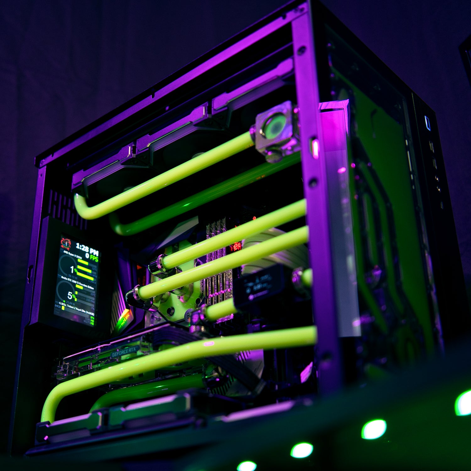 From dream to reality, we thrive on bringing your custom PC vision to life. From multiple custom integrated screens to paint, decals, laser etched work, and, of course, custom water cooling loops. We do it all! Click below to get your free quote.